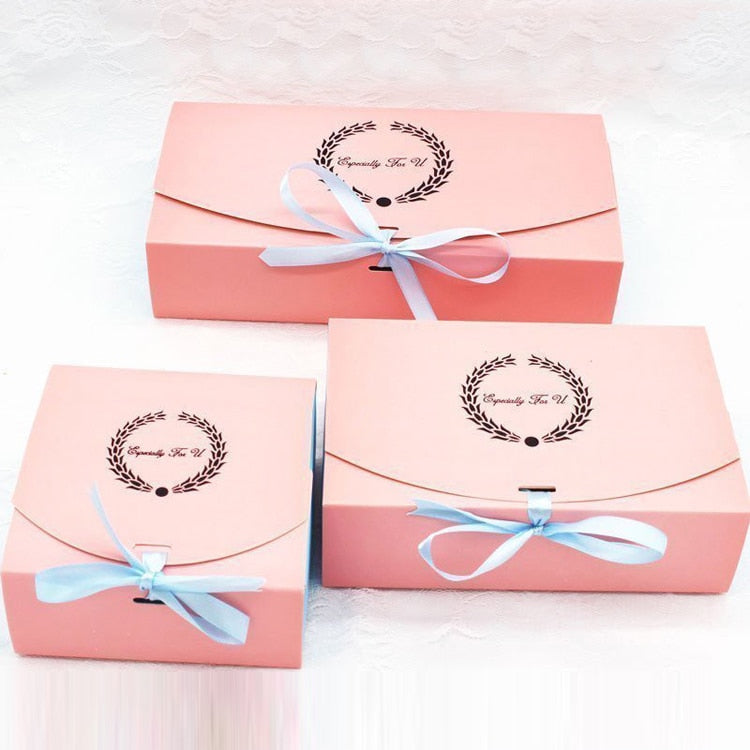 500 Pcs kraft paper box Wedding party garland Ribbon Pink cupcake Cookies candy box Maccaron Floral Gilding gift packaging bag