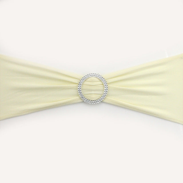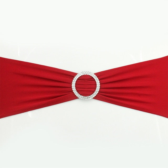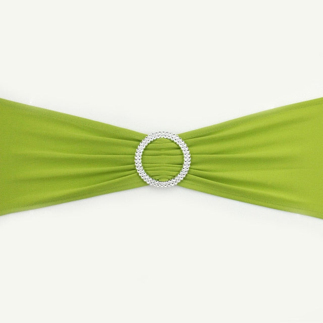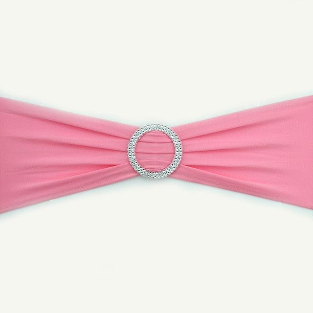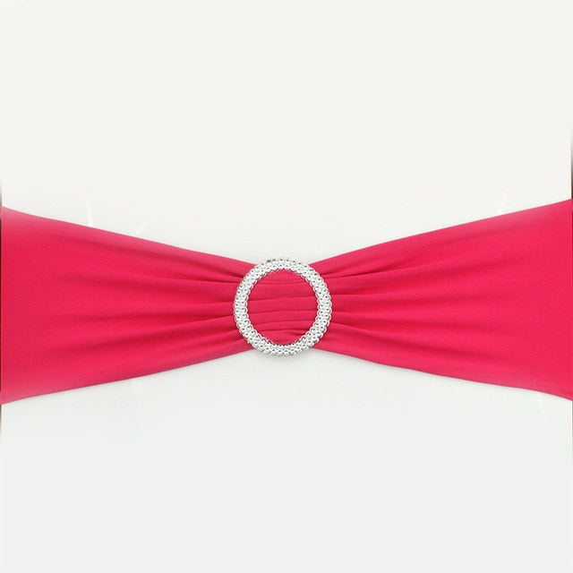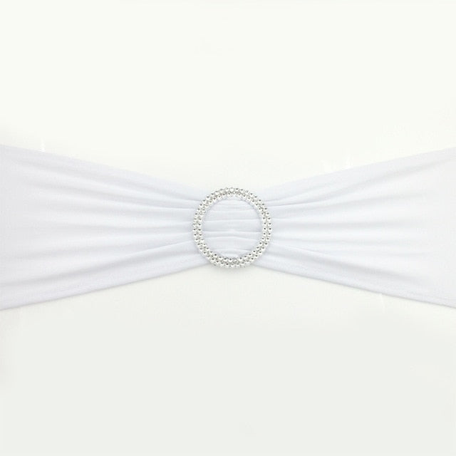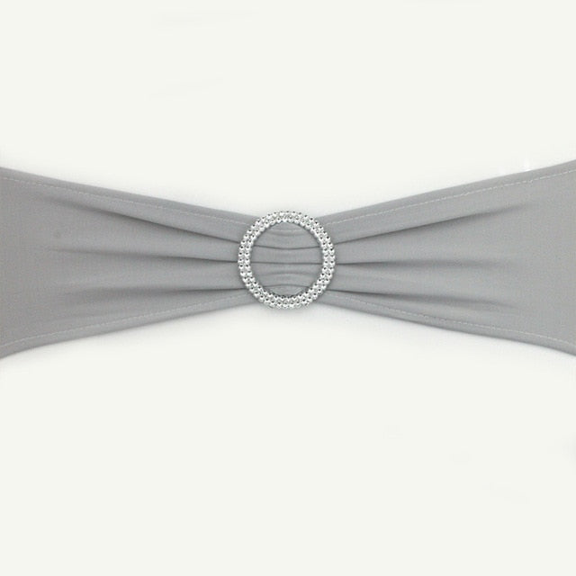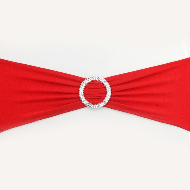 Hot 100PC Removable Chair Sash Bands Spandex Stretch Lycra Chair Cover Bows with round Buckle Weddings Party Banquet Decoration