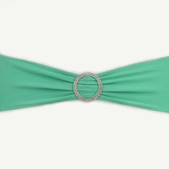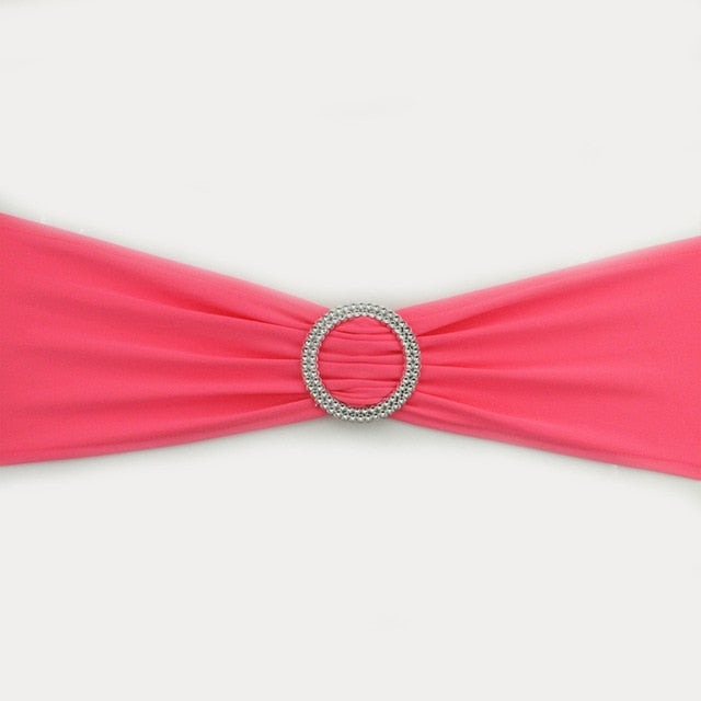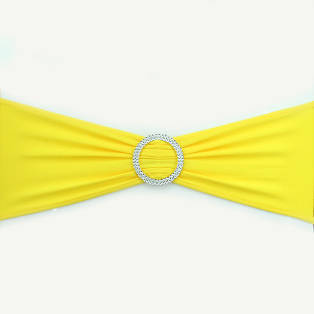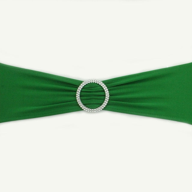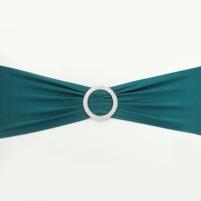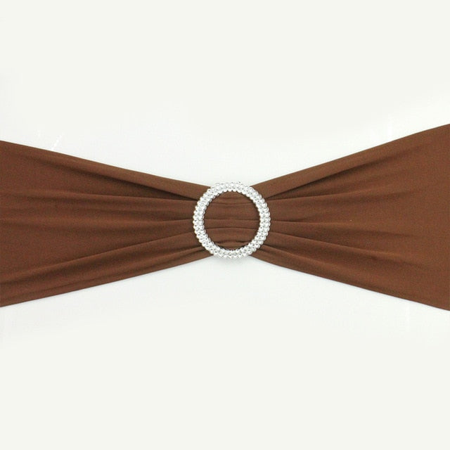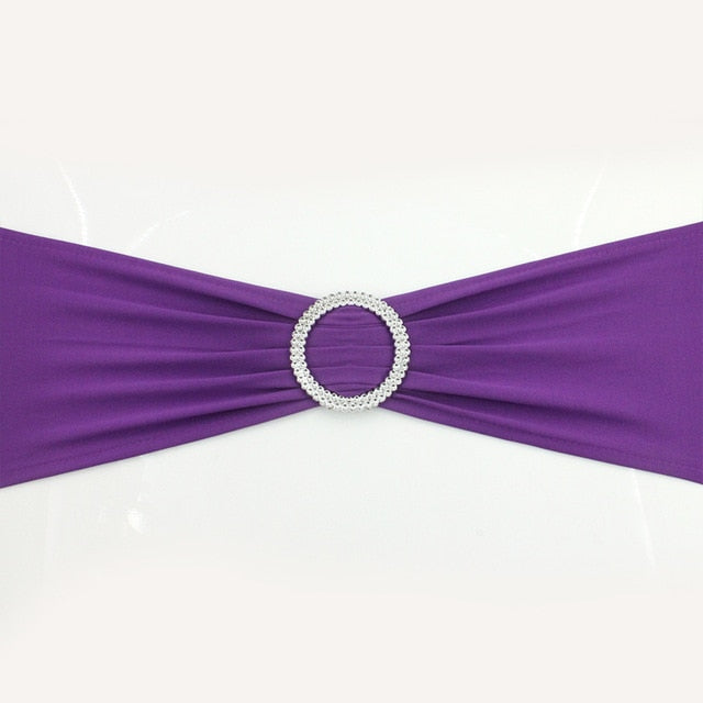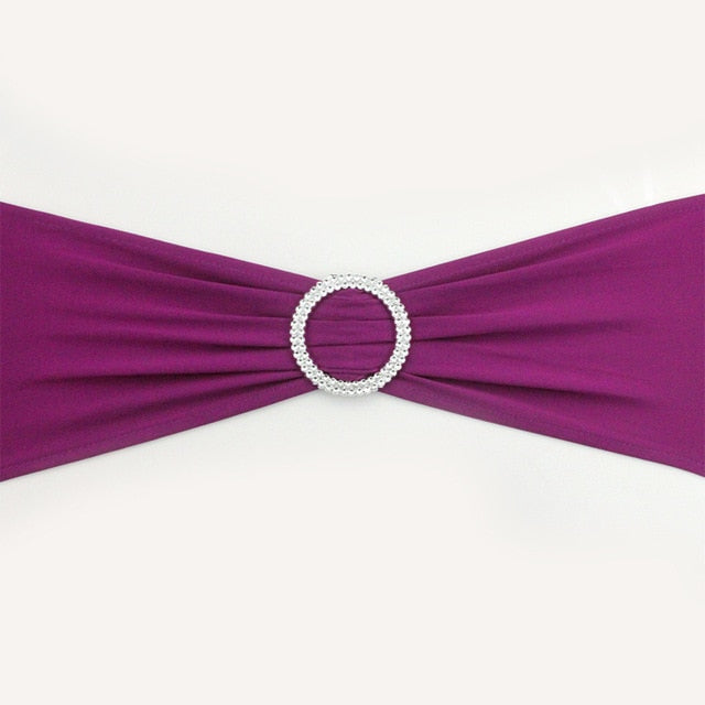 Hot 100PC Removable Chair Sash Bands Spandex Stretch Lycra Chair Cover Bows with round Buckle Weddings Party Banquet Decoration